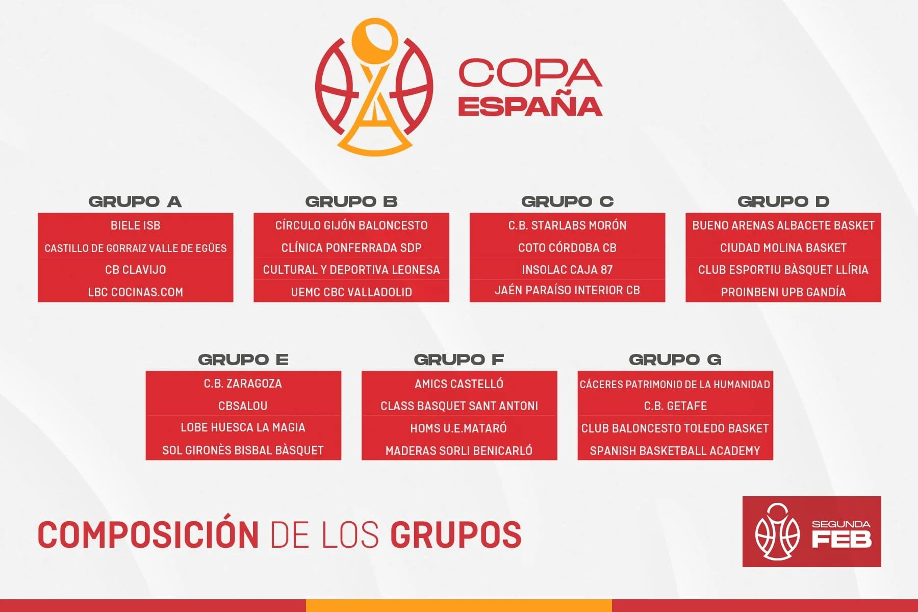 De su lado, CCB tiene previsto competir en el cuatro C en la primera fase de la Copa de España, que incluye a CB Jaén, Caja 87 y Morón, en las jornadas 13-14 de septiembre, 20-21 y 27-28. Del resultado de estos encuentros, los quince mejores de todo el territorio nacional pasarían a dieciseisavos de final en una ronda que incluirá a diecisiete equipos de Primera FEB y que está prevista que se dispute los días 21 y 22 de octubre.