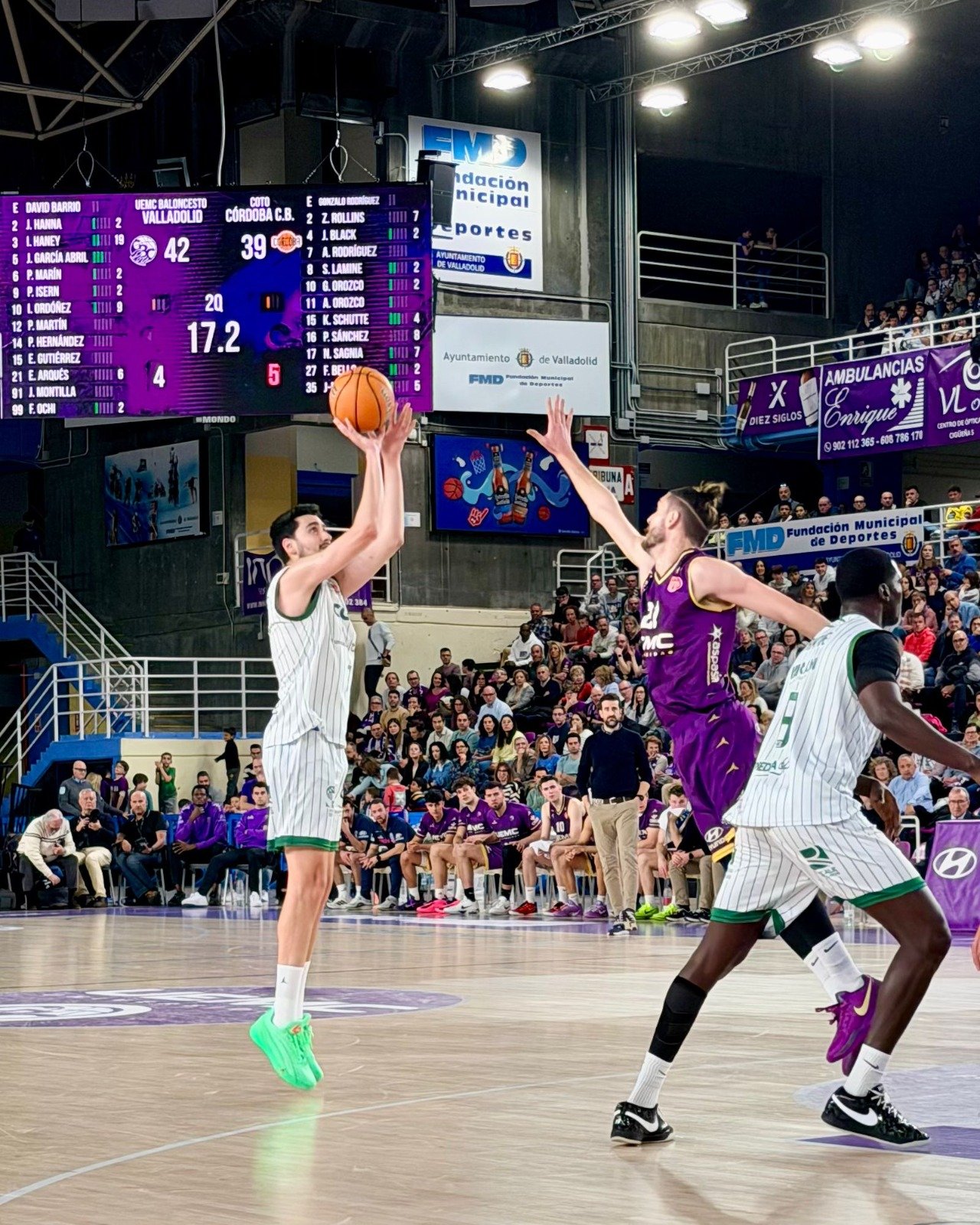 Valladolid logró sostener una ventaja mínima en los primeros compases, apoyado en el trabajo interior y los tiros libres de Ordoñez, mientras CCB respondía con acciones puntuales y presencia en el rebote ofensivo. El marcador se movía en márgenes muy cortos, reflejo de un intercambio constante de golpes.